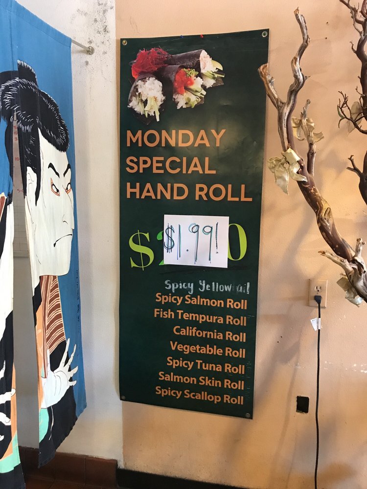 In: crab, spicy tuna (no rice, no seaweed). Top: fried in tempura.